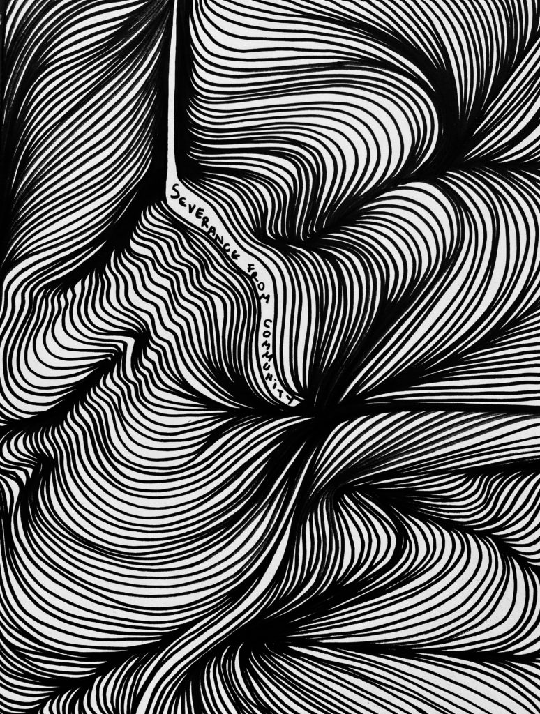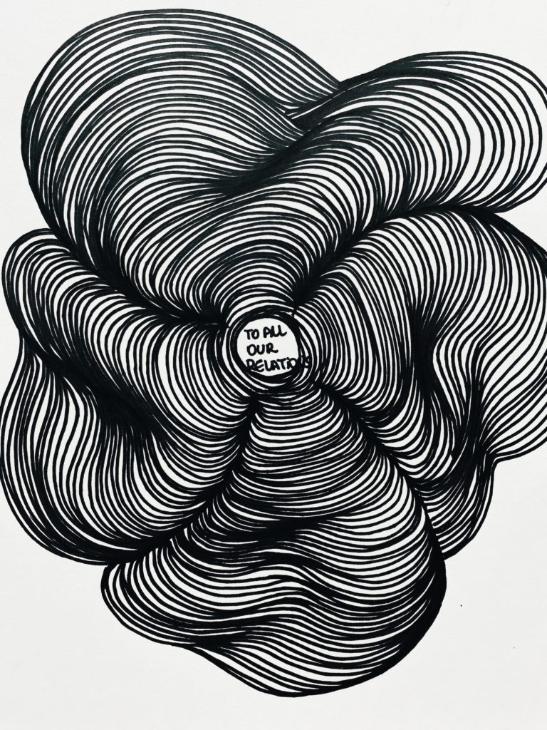 Untitled by Brian Bantum. I found the early days observing the “stay at home” orders to be disorienting and overwhelming. It felt like there were too many things to do, but nothing felt particularly important given our moment. In the midst of this, I began drawing a few lines here and a few lines there. As I did I was struck by how they built up over time and took on their own life. And each time I did it, a new weight or image emerged. So I began doing a new set of lines each day.