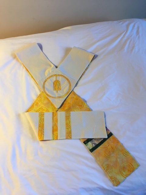 A stole for a priest friend’s ordination- Camaldolese Monastery bell of hospitality adornment by Alison Benders