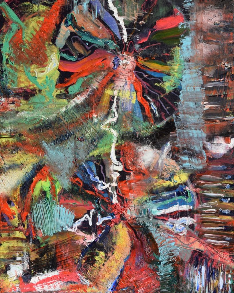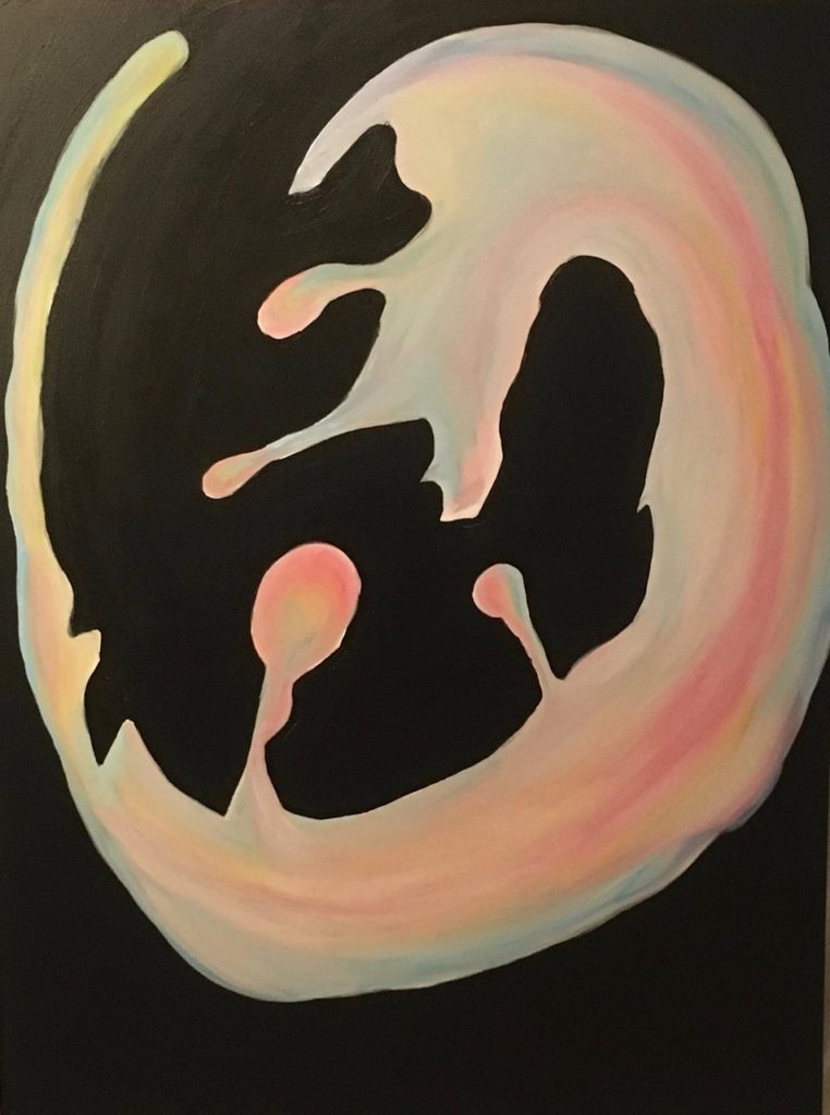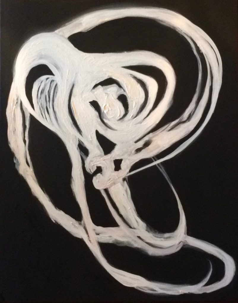 The works Los ojos se me nublan de tristeza and Vespers, depict one of the artist's visual lexicons, the circle representing the autonomous individual. Under COVID-19 alienation, with its detached online gatherings, these figures are elongated as they stretch towards one another. Such yearning becomes an active lament by way of winding and weaving to become one in sorrow and hope. The ashen palette refers to both mourning and twilight.