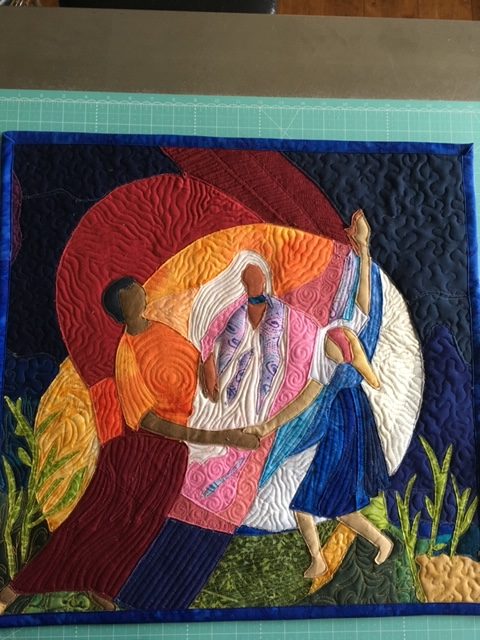 Community symbols for St Columba Parish in Oakland quilt by Alison Benders