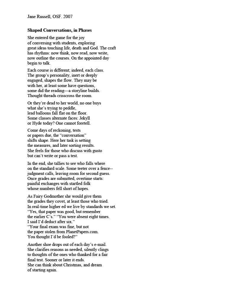 Shaped Conversations, in Phases (2007) by Jane Russell, OSF